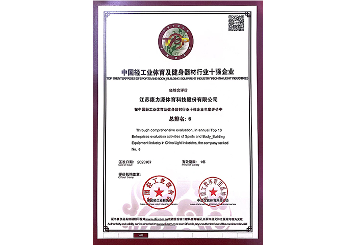 中國(guó)輕工業(yè)體育及健身器材行業(yè)十強(qiáng)企業(yè)