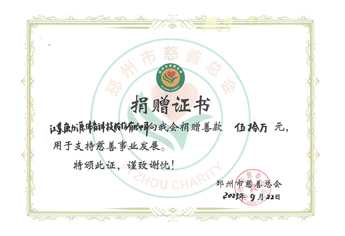 邳州市慈善總會(huì)捐贈(zèng)證書(shū)